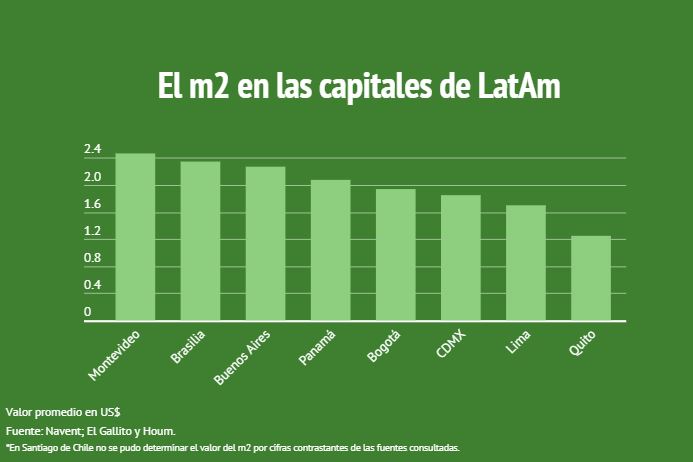 El costo del metro cuadrado en las capitales del continente latinoamericano tiene a Uruguay en la punta del ranking