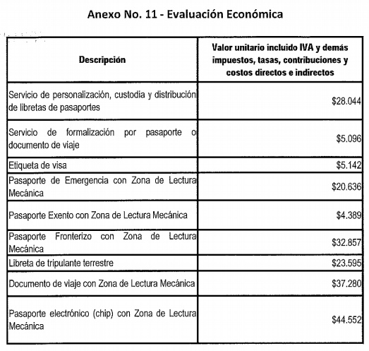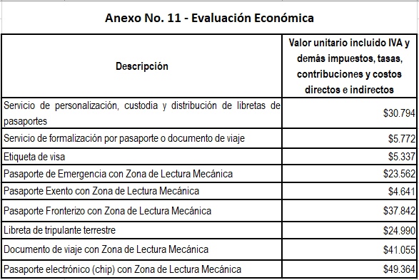 Aquí la evaluación económica de coste unitario por pasaporte presentado por Cadena.