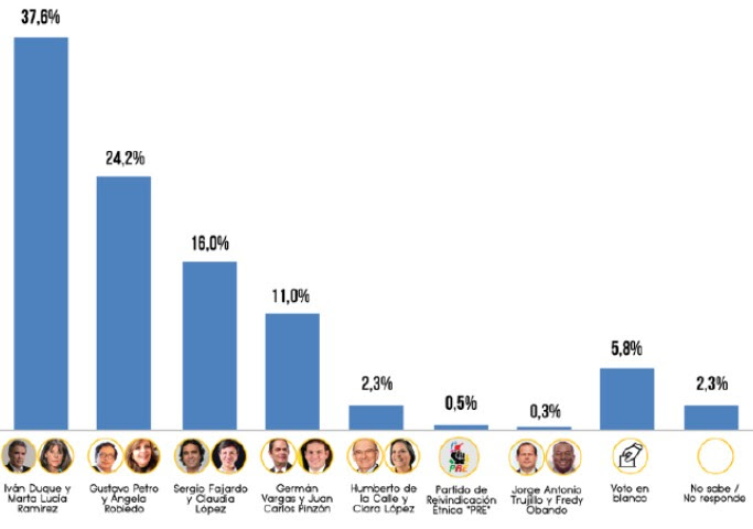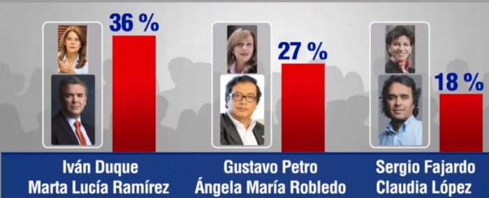 Iván Duque – Marta Lucía Ramírez el 2 de mayo 38 %, hoy 36 %.