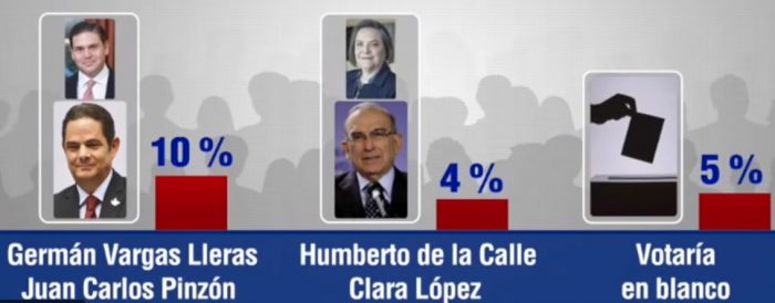 Germán Vargas Lleras – Juan Carlos Pinzón el 2 de mayo 7 %, hoy 10 %.