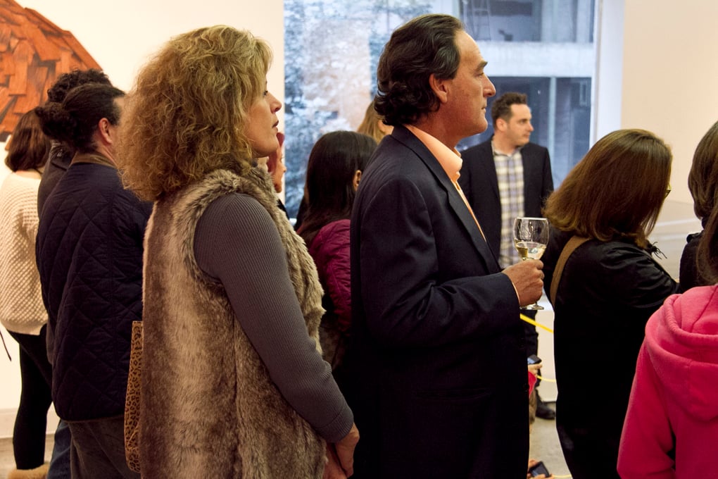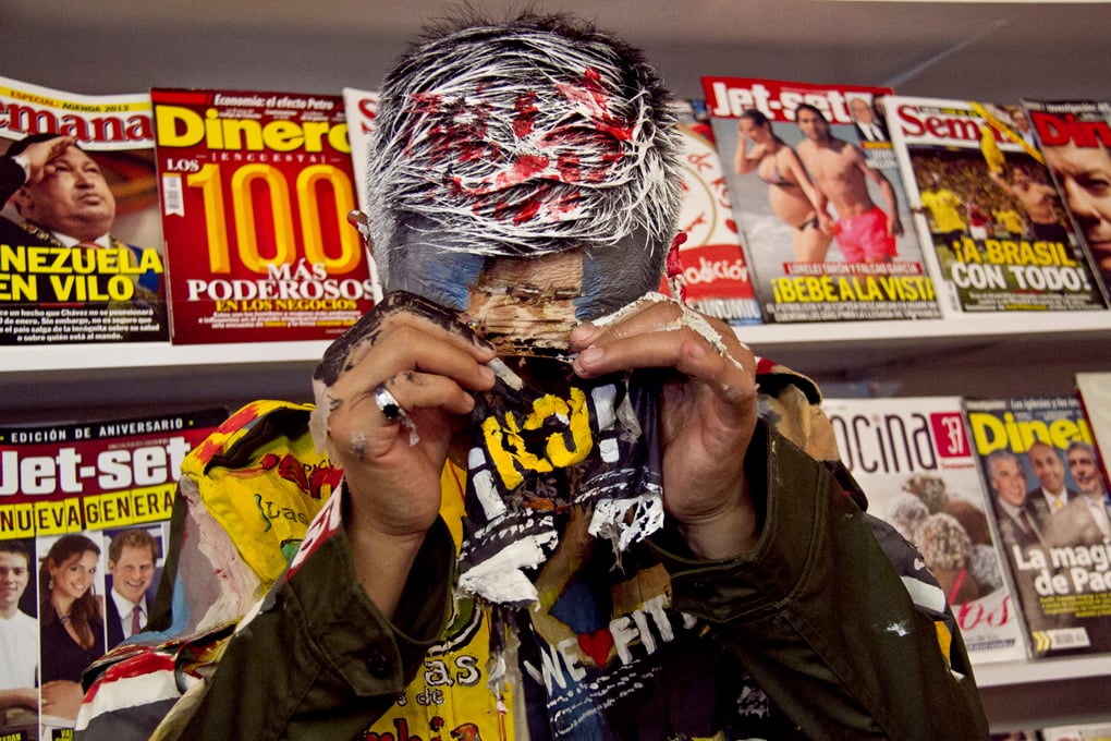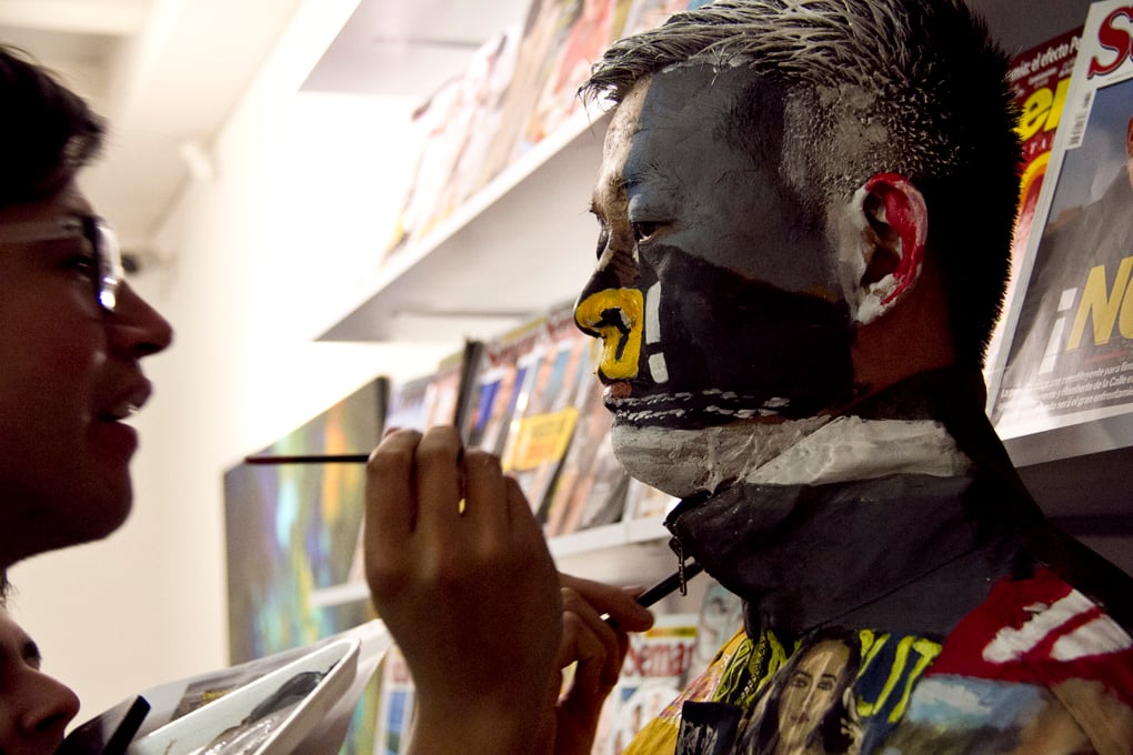 Lui lleva tres horas parado frente a un escaparate con carátulas de las revistas Semana, Jet-Set, SoHo y Dinero. Los flashes de las cámaras no le encandilan los ojos porque ya los tiene acostumbrados a la prensa. Dos bolas blancas se mueven al fondo. Dos ojos que miran a un público que se entona con unos vinos, cuchichea y sonríe por inercia mientras Lui permanece firme como una piedra. El eco de las voces acompaña al pincel que se desliza por sus labios y después de cuatro días está punto de terminar los últimos detalles.