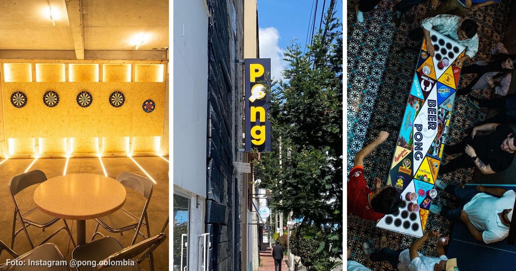 Pong es bar de juegos ubicado en Usaquén (Cra 5 # 119-47) y aunque ofrece el ambiente convencional de un bar, diferentes cervezas y cocteles, su mayor atractivo es la experiencia de poder jugar mientras se disfruta junto a amigos. En este lugar se puede jugar ping pong, dardos, bolirana, beer pong, entre otros juegos de mesa.