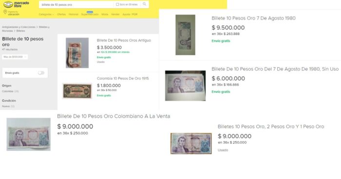 De acuerdo con el creador de contenido conocido como ‘numismaker’ uno de los billetes antiguos más costosos sería el de 10 pesos oro colombiano, difundido por el Banco de la República desde 1963, en su segunda versión, ahora podría alcanzar un costoso de hasta más de 9 millones de pesos entre los coleccionistas.