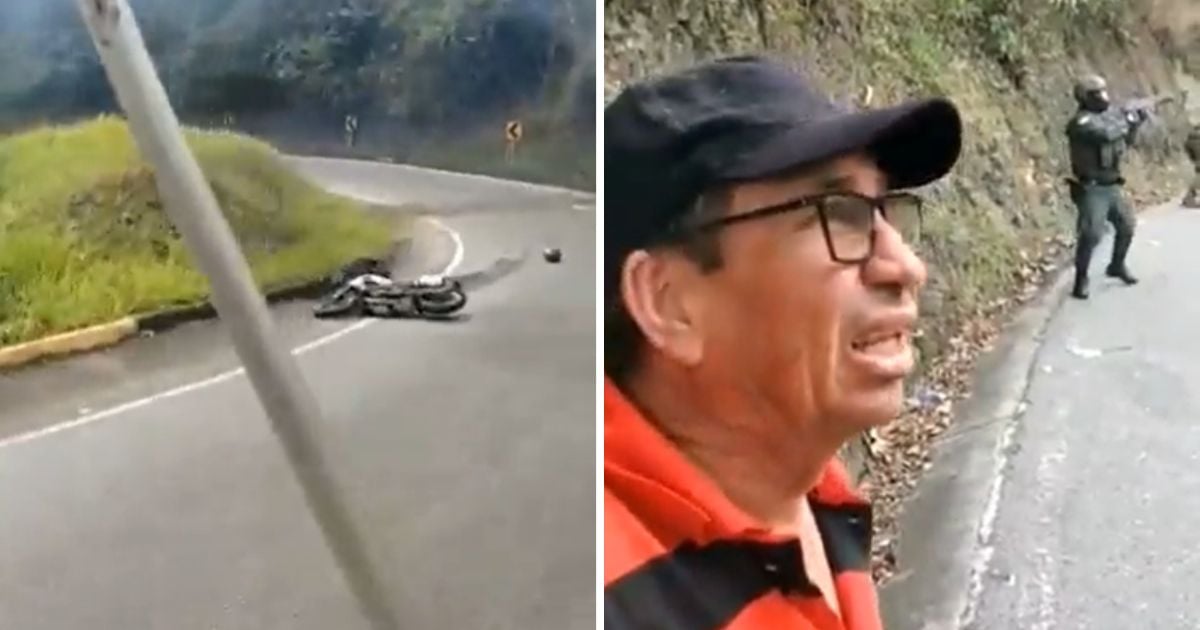 El señor David Osorio decidió arriesgar su vida y bajarse del vehículo para retratar la impresionante escena que se estaba viviendo.“¡Santo Dios! mataron a un policía, está herido, Dios mío Lindo”, son las primeras palabras del conductor en el video; de fondo se escuchan varios tiros.