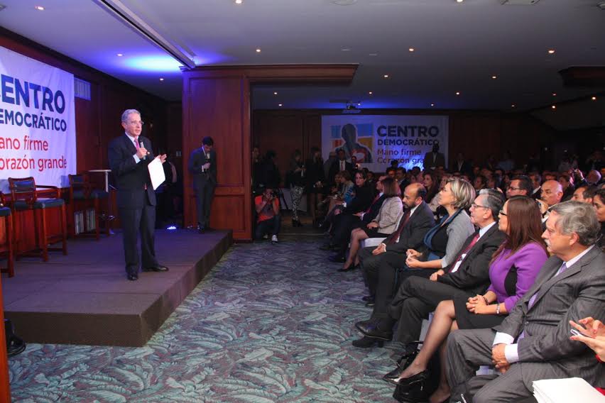Cerca de 300 asistentes entre simpatizantes, empresarios, ganaderos, militares en retiro y los candidatos del Centro democrático al Congreso acudieron al Hotel Dann Carlton en el norte de Bogotá e hicieron un aporte mínimo de un millón de pesos por persona para apoyar al expresidente.  Uribe ha señalado que en términos de financiación, su campaña está en desventaja contra la aplanadora de la Unidad Nacional del Presidente Santos que cuenta con cuantiosos recursos burocráticos.