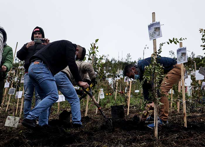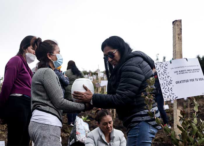 A pocos metros de Catalina Valencia, sus hijas y sus nietos, la familia Sierra enterraron las cenizas de Adelina Sierra. Tenía 68 años. Murió de Covid-19 el pasado mes de junio. Antes de que el virus de origen chino se convirtiera en pandemia y matara a la fecha a más de 100 mil colombianos, el proyecto de Margarita Ballesteros para reforestar el páramo había sembrado —en cinco años— unos tres mil árboles. En medio de la pandemia y luego de que empezara la apertura gradual, de septiembre de 2020 a la fecha (julio de 2021), se han sembrado unos cuatro mil árboles y se han enterrado unas mil cenizas.