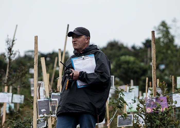 —Esto es muy bonito y genera mucha paz y tranquilidad— dice John Jairo Torres. Él está con su novia, su hermana y sus sobrinos. Su papá, Jairo Torres, murió hace dos meses. John Jairo no trae cenizas. Al no haber velorio ni despedida tradicional en medio de la pandemia, sus compañeros de oficina no le enviaron ni coronas ni flores. Le regalaron un bono para plantar un árbol en homenaje a su padre. John Jairo lloró mientras que al árbol que sembró le amarraba una cruz de madera pequeñita que su papá siempre tenía en la mesa de noche.