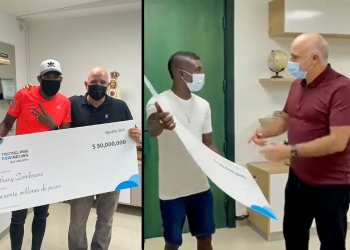 Con Zambrano la situación fue más tranquila. El medallista de plata no creyó que fuera un cheque falso, aunque si le hizo bullying a Daes apostando que iban a hacer una carrera entre los dos. Al final, ambos se fotografiaron y el empresario lo montó en su cuenta, lo que sirve para que él muestre que sí le entregó a los deportistas lo prometido.