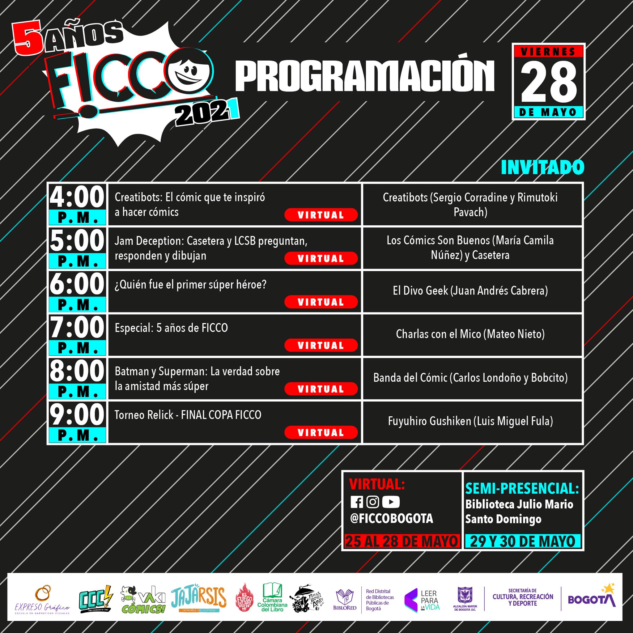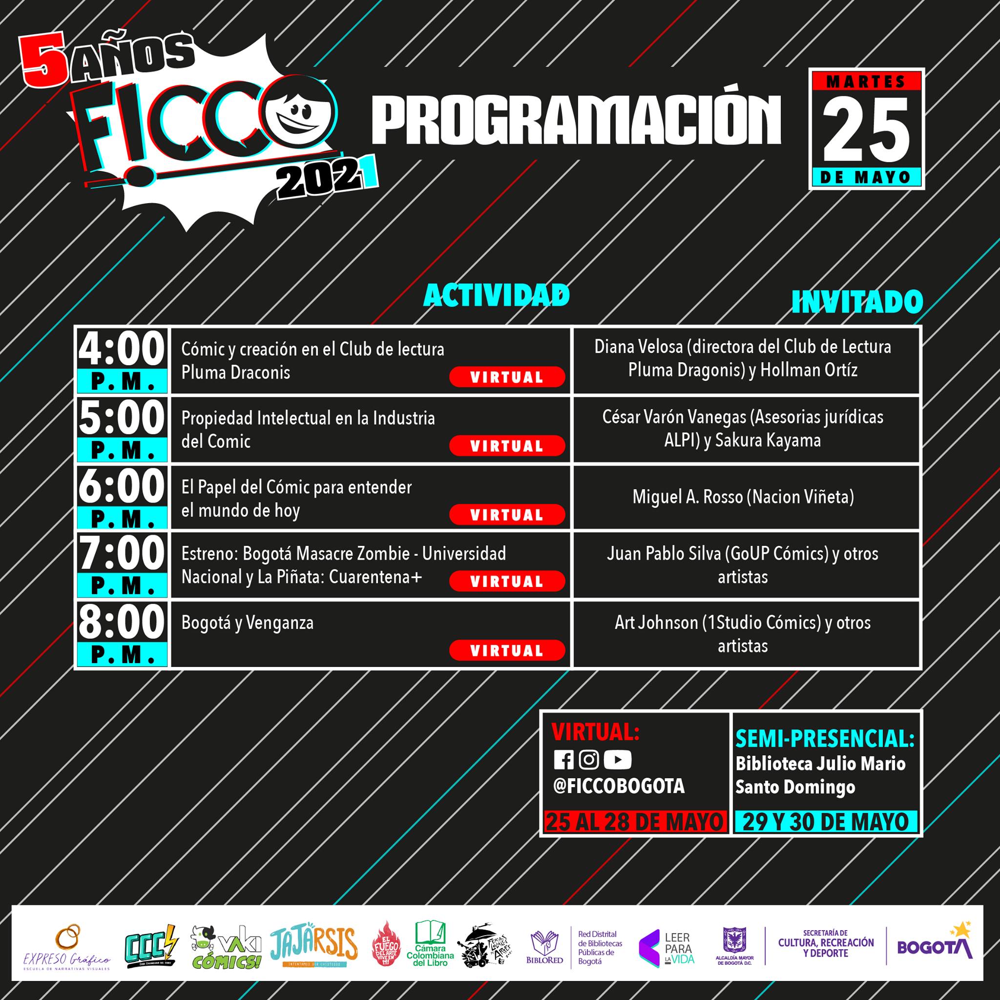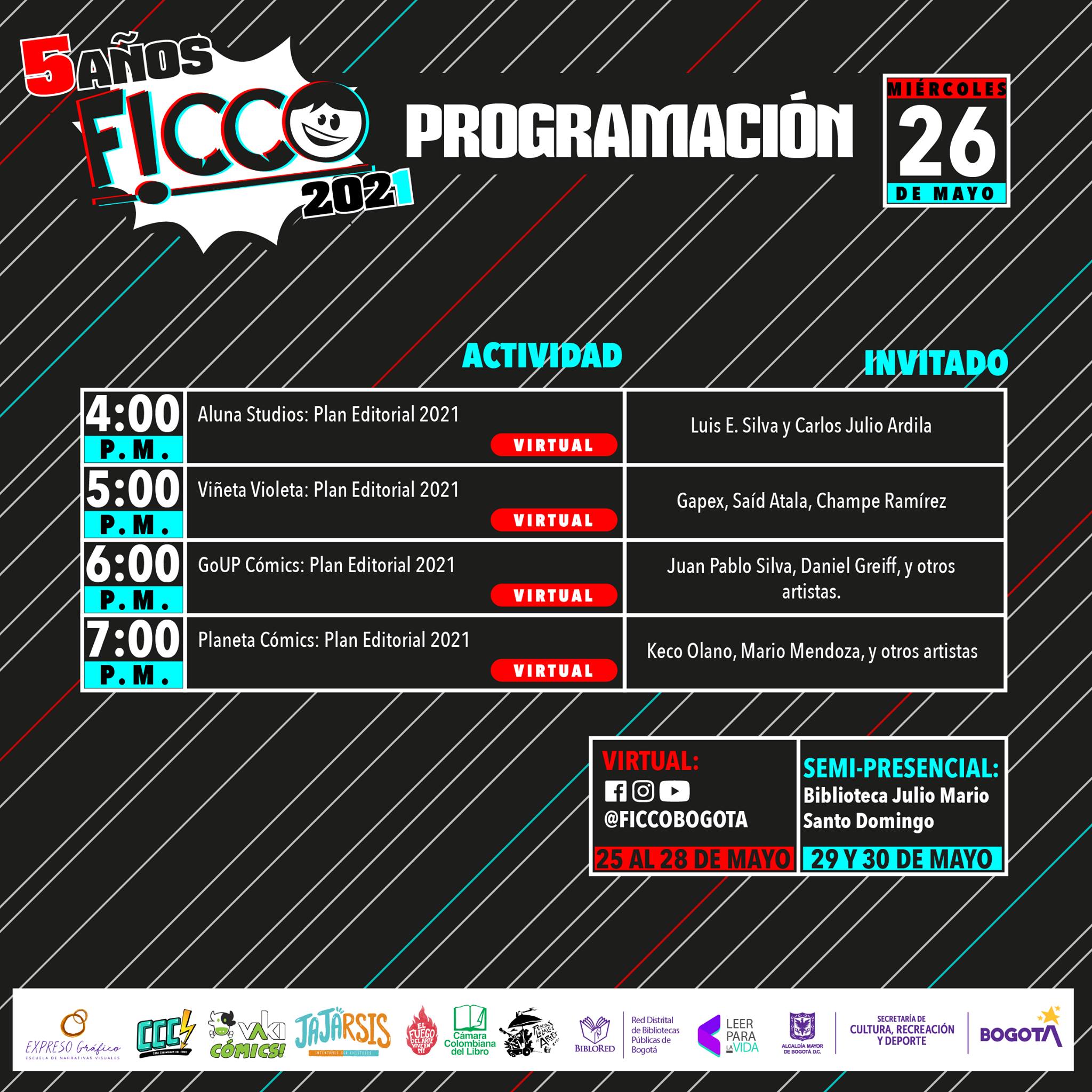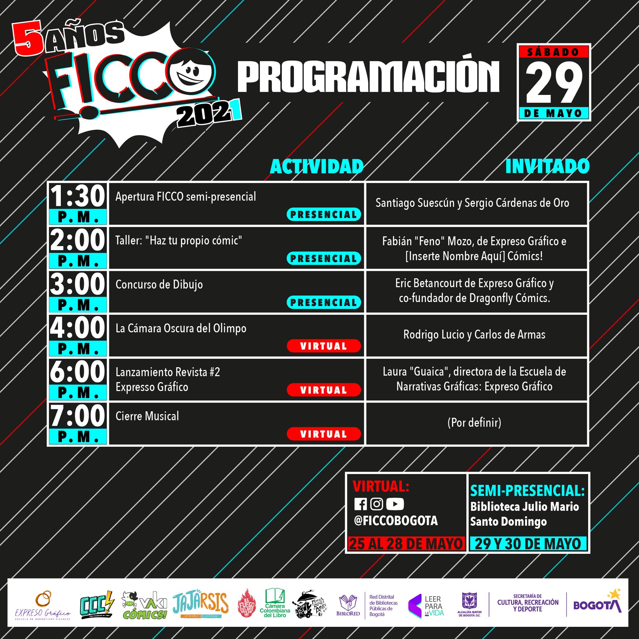 Con más de 35 actividades virtuales y presenciales, inicia la quinta edición del Festival Independiente de Cómic Colombiano (FICCO), un evento que reúne a los artistas, fanáticos, editores y conocedores de este género, que se realizará desde el 25 de mayo hasta el 30 del mismo mes.