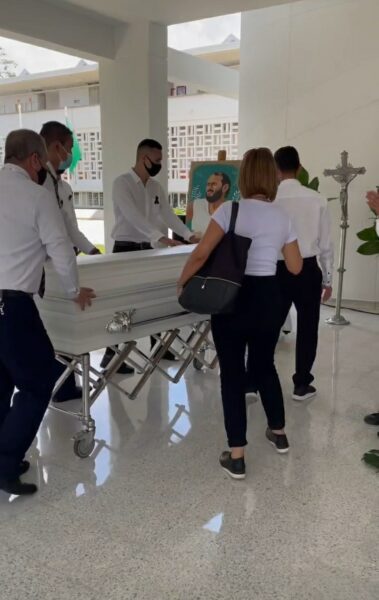 El féretro visitado por cientos de sus compañeros, amigos, familiares y conocidos de Lucas que asistieron al lugar, después de honrarlo pacíficamente en las calles. Foto: Vía Twitter