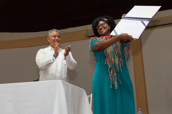 El arraigo de Mabel Torres con su tierra y la valoración por el conocimiento tradicional es tan de fondo que convenció al presidente Duque de posesionarla en el Chocó, algo completamente inusual, viaje que él aprovechó además para visitar Bojayá junto a sus ministros del interior Nancy Patricia Gutiérrez, de vivienda Jonathan Malagón, el comisionado para la Paz Miguel Ceballos, altos mandos del Ejército y la jefe de gabinete María Paula Correa.