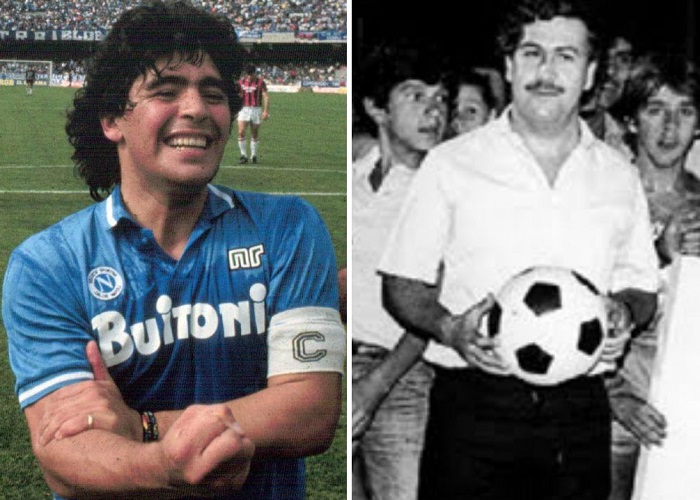 Coppola (Guillermo), me dijo que una persona muy importante de Colombia quería pagarme una enorme cifra por jugar un partido amistoso, con algunos futbolistas como René Higuita. Cuando fui a Medellín, y me llevaron a una cárcel rodeada por miles de militares dije: ¿Qué mierda pasa, ¿me van a meter preso? Cuando entré a ese lugar parecía un hotel de lujo de Dubai, ahí me lo presentaron, me dijeron: “Diego, él es el patrón”. Lo saludé y el tipo muy respetuoso, bastante frío, pero demostró amabilidad conmigo. Pero como yo de noticias y tele nada, no sabía muy bien quien era. Luego me hizo pasar a una especie de oficina dónde me dijo que admiraba mi fútbol, y que se sentía identificado por mí, porque al igual que yo, él salió de la pobreza para triunfar... Me dijo que como yo comulgaba ideas de izquierda, y que su intención solo era jugar un partido. Jugamos el partido, todos lo disfrutamos mucho. Luego a la noche se armó una fiesta con las mejores minas que vi en mi vida, y estaba en una cárcel. No lo podía creer. A la mañana siguiente me pagó y se despidió de mí de forma muy amable.