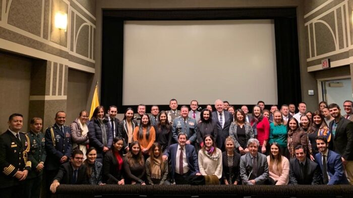 Funcionarios de la Embajada de Colombia en Washington, Embajada de Colombia ante la OEA y Consulado de Colombia en Washington, junto con los representantes de las agregadurías militares y policías en Estados Unidos, durante una visita de la exCanciller Claudia Blum en diciembre del 2019. Foto: Cancillería