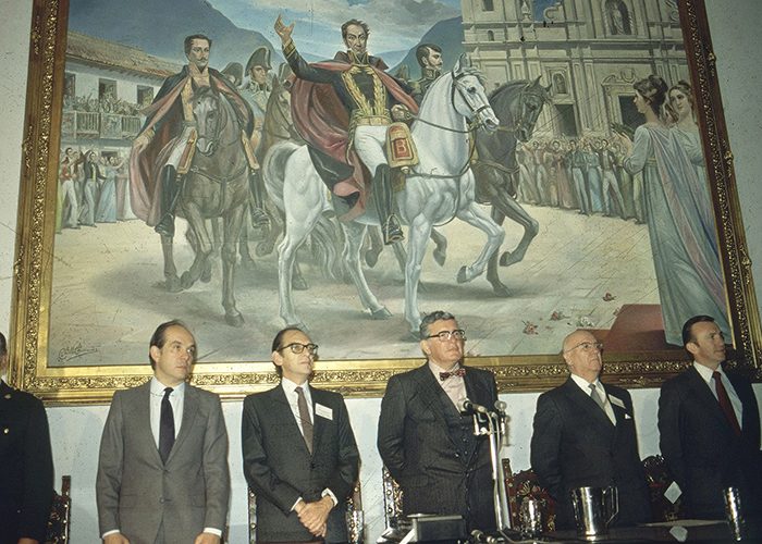 Jorge Mario Eastman Vélez junto al presidente Julio César Turbay y Carlos Lemos Simmonds, entonces secretario general de Palacio y quien recibió la palomita presidencial consiguiendo una pensión de presidente. Foto cortesía: Archivo El Espectador