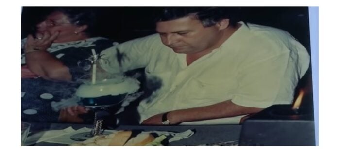 En 1989 lo dejó de ver. Le alcanzó a tomar una foto, esta, donde ya no podía sonreír. Estaba cercado por los Pepes, por el Bloque de Búsqueda. Perdía la guerra. Por eso, entre todas las fotos, la que prefiere el Chino es esta. Fue en uno de los cumpleaños de su hija Manuela. Pablo está mirando un coctel humeante, se nota agobiado por las tribulaciones.