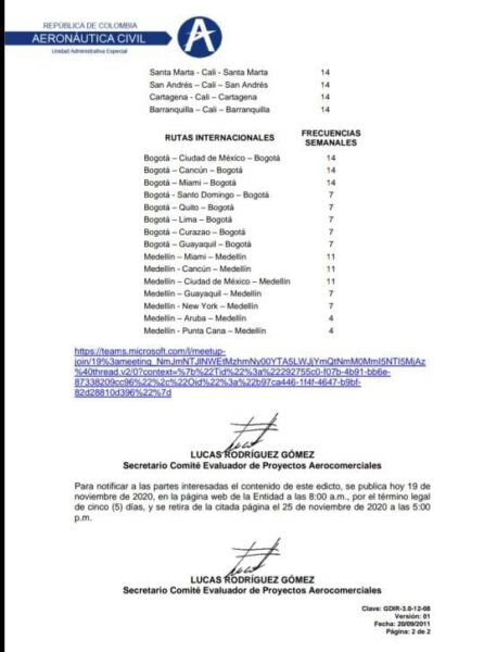 Estas son las rutas comerciales domesticas e internacionales aprobadas por la Aeronáutica Civil para que Ultra Air SAS opere desde varios aeropuertos colombianos: