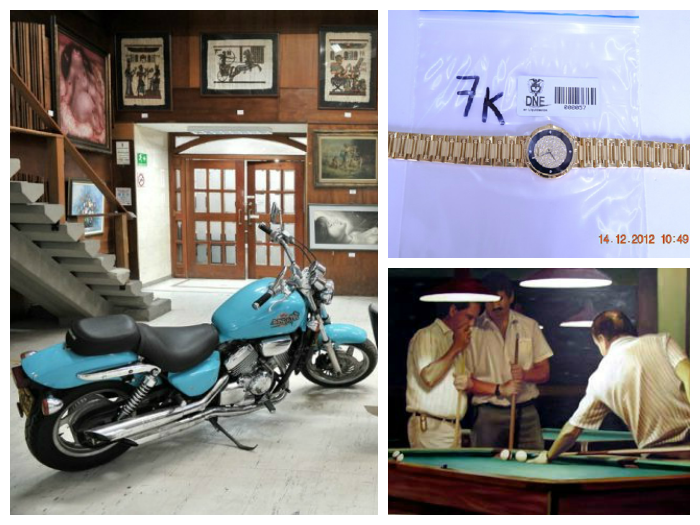 La pieza número 7 de la subasta pública era una Harley-Davidson Softail que perteneció a Juan Carlos Ramírez Abadía, alias Chupeta. En una tienda Harley-Davidson no la venden por menos de diez mil dólares, pero aquella noche de noviembre del 2013 su precio se fijó en una cuarta parte de su valor comercial. Presentaba algunas fallas en el motor y el ensamblaje por falta de mantenimiento. Fue incautada en 2005.