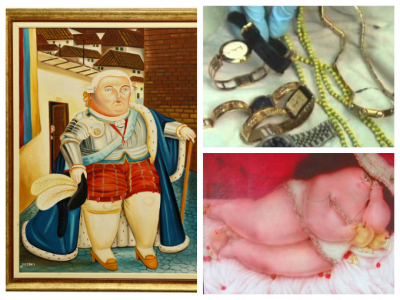 Regresando al tema de las obras de arte, Víctor Patiño Fómeque, alias el Químico, que inició sus andanzas en el narcotráfico desde 1985 y se convirtió en uno de los hombres poderosos del cartel de Cali tenía en su colección óleos de Luis Caballero, un grabado de David Manzur, cuadros de Armando Villegas, Alejandro Obregón y Enrique Grau. Tras ser incautados, el precio ofertado por algunas de las obras fue doscientos millones de pesos. En contraste, algunas obras auténticas de artistas colombianos se han vendido por medio millón de pesos o incluso menos.