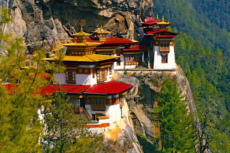 El Nido del Tigre, en constante desafío al vacío, es un templo que cuelga sobre la cornisa de una montaña de 1.000 metros de altura en el valle sagrado de Paro, para ubicarse a una altitud de 3100 metros sobre el nivel del mar. Data de 1692 y no es tan sencillo llegar, no solo por su lejanía, sino porque el acceso a los visitantes está muy restringido y fuera de eso solamente se puede acceder a pie o a caballo por una senda sobre el extremo norte del Valle de Paro. A pesar de todo eso es de lejos el principal reclamo turístico de este exótico país.