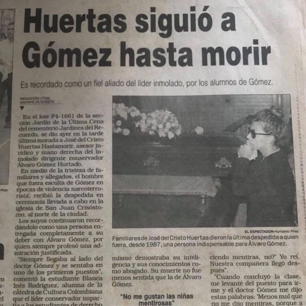 Al día siguiente la muerte de Álvaro Gómez era noticia de primera plana. De los treinta y dos artículos publicados en El Espectador sobre el atentado, solo tres mencionaban a José del Cristo. De las cuarenta y cinco condolencias regadas entre las páginas del periódico, cuarenta lamentaban la muerte de Álvaro Gómez y ni una sola estaba dedicada a José Huertas. Asimismo, en la nota en la que se informan los fallecidos del día anterior se mencionaba a Gómez de primeras y en ningún momento aparecía el nombre de su asistente.
