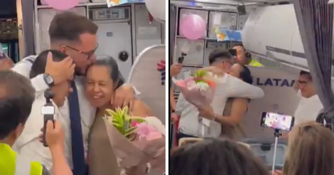 Esta era la primera vez que el piloto Sebastián Osorio manejaba un avión en el que sus padres eran los pasajeros. La noticia tomó por sorpresa a sus progenitores que no pudieron evitar emocionarse al igual que los demás pasajeros que grabaron el momento, que hizo llorar a más de uno.