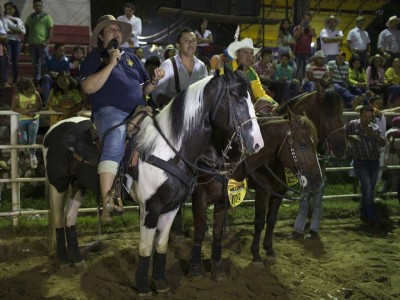 A pesar de que la campaña por la alcaldía de Yopal no ha empezado de manera formal, Jhon Jairo hace apariciones públicas cada semana. Aquí, en uno de sus caballos favoritos, que monta descalzo. Foto: Federico Ríos