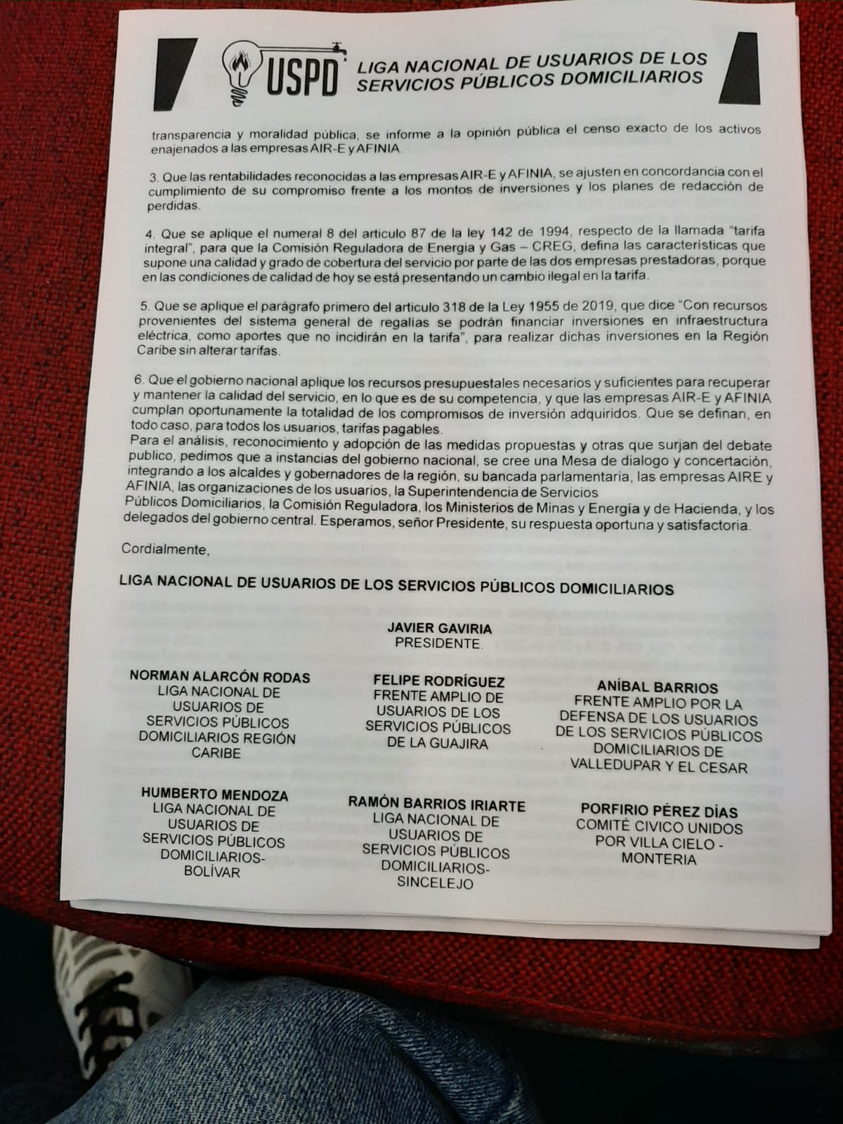 El 9 de septiembre Gustavo Petro viajó a Cartagena para asistir al la clausura del XXIV Congreso de Servicios Públicos. En medio del evento, hubo un frente al centro de convenciones del Hotel Las Américas de la Liga Nacional de Usuarios de Servicios Públicos Domiciliarios (USPD) con delegados de los siete departamentos de la región Caribe.