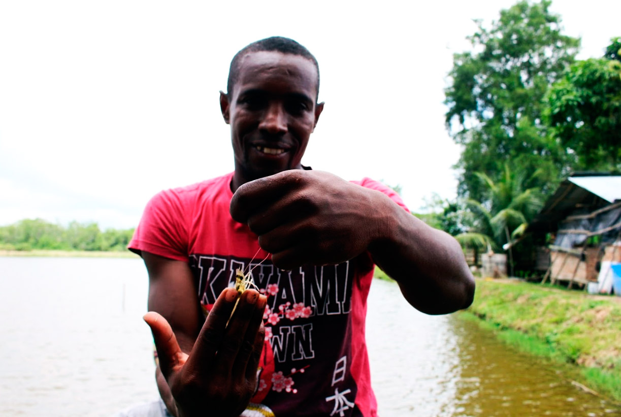 Gladys Estacio nunca perdió la ilusión de volver a ver las piscinas que alguna vez su suegro cavó a punta de pala, llenas de agua y camarón otra vez. Hace 17 años su familia podía sustentarse completamente del negocio, pero la Mancha Blanca acabó con todo lo que conocían. Las piscinas se llenaron de monte y el rebusque fue el pan de cada día. Sin embargo, desde hace cuatro años, con el impulso de un proyecto productivo, decidieron recuperar un oficio tradicional que corría por sus venas. Junto a su esposo y su hijo limpiaron los estanques y en pocos meses lo que parecía un sueño se convirtió en realidad: 7.5 hectáreas de camarón crecían en el patio de su casa.