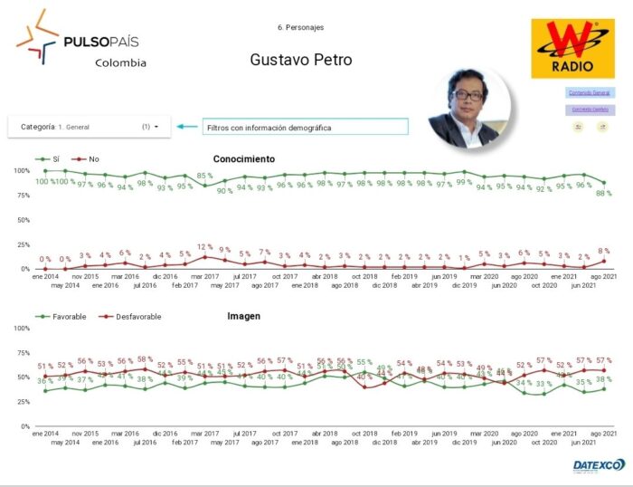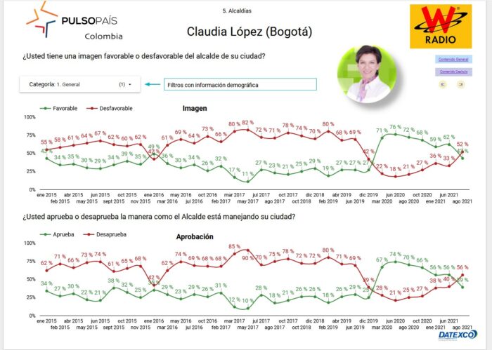 La encuesta Pulso País de Datexco para W Radio revela una situación muy diferente en la política colombiana a la que, en especial, Claudia López y Jaime Pumarejo deben prestar atención. Otros nombres como el de los candidatos Sergio Fajardo y Óscar Iván Zuluaga indican una posición mucho mejor para afrontar el inicio de la campaña presidencial.