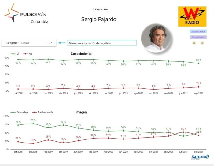 En cambio, Sergio Fajardo tuvo un disparo en su imagen: subió un 12% y volvió a tener más personas con opinión positiva que en negativa.