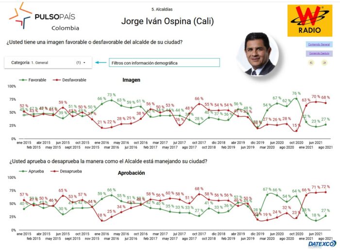 Jorge Iván Ospina ha mejorado levemente en su imagen, pero los caleños en general siguen rechazando su desempeño como alcalde.