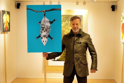 Por eso esta exposición pinta poemas de un corazón salvaje, una abeja, un tigre, la nube, el corazón del planeta con el río, la mariposa libre, el tulcán desprevenido. Otras imágenes vienen del Instituto Humboldt donde el artista aporta la mitad de las ganancias van para la fundación Gaya Amazonas.