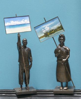 La exposición de las pinturas está abierta un mes. Lo mismo que las 40 esculturas en bronce que tipifican seres de todos lados de la geografía que, de igual manera hacen parte de la exposición. Como si fuera el taller de fundición también estarán expuestos los moldes en la mesa de aluminio.