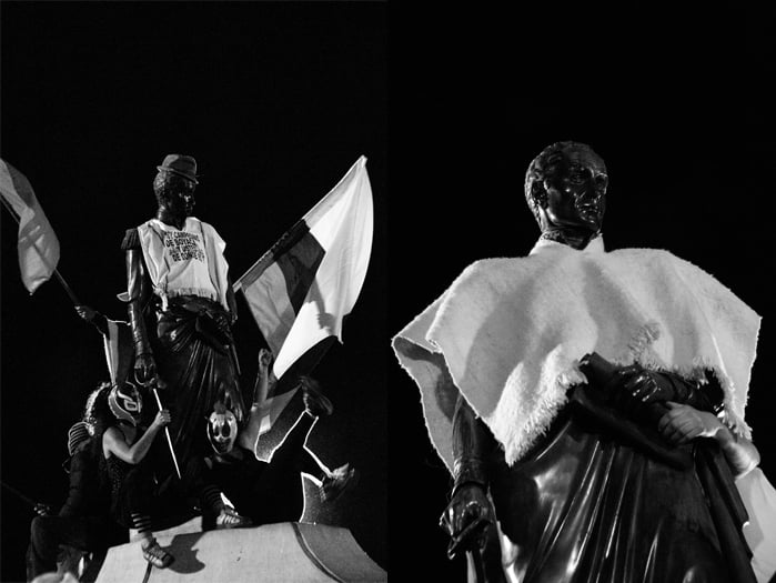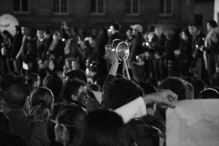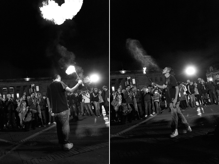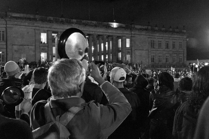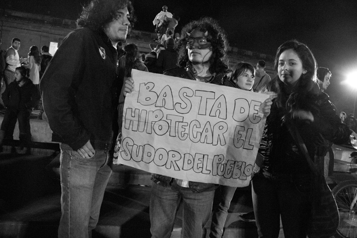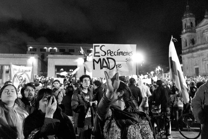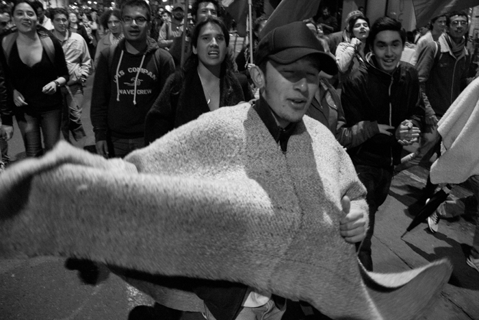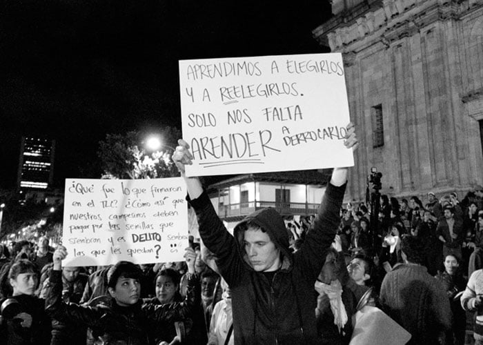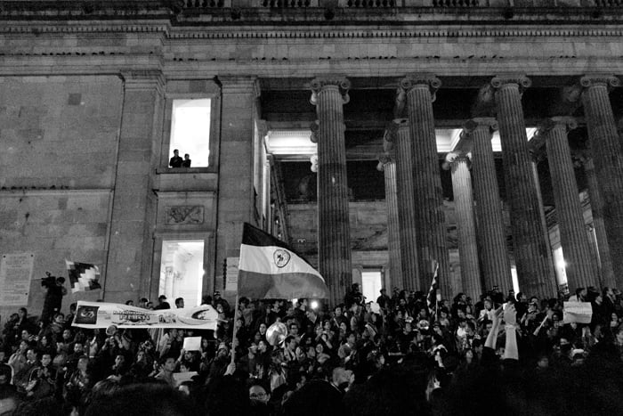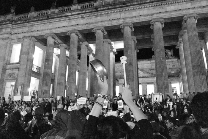El grito nace en el campo, lleva viajando ya diez días y tiene una considerable resonancia en la ciudad. Nos han escuchado las altas cortes. Mr. President MonSantos respondió a las protestas, dice reconocer el Paro Nacional Agrario como justo, propone el diálogo y así mismo pide disculpas por los abusos cometidos por la fuerza pública contra el pueblo. Aquí en la plaza Bolívar el ESMAD se encuadró sobre las escaleras para un número de teatro bastante conmovedor -se quitaron los cascos- en aparente confabulación con los manifestantes. Ya casi todos los peones de la patria, los soldados, ESMAD y policías se los ve amables y considerados con la causa. Parece ser un paso adelante en nuestra marcha por la paz. Pero es inevitable ver estos hechos con desconfianza pues el gobierno ha probado ser mentiroso, culebrero y más que hábil con las relaciones públicas e internacionales. Ellos mismos lo dicen como para defenderse de las denuncias: que los muchachos del ESMAD sólo cumplen órdenes, que no son asesinos. Bueno y entonces quién es el que ordena asesinar y saquear al pueblo. Le damos la mano a la honestidad y sinceridad. será mejor que éste no sea un acto de cobardía política, sino un acto de peso y carácter humano.