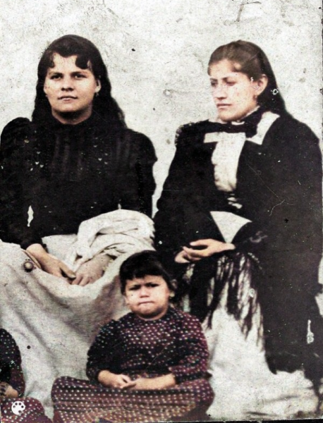 DOÑA NIEVES SUÁREZ (DER.), HIJA DEL GRAL. EDUARDO SUÁREZ. ABUELA MATERNA DEL POETA. DA. MARÍA SUÁREZ (IZQ.), TÍA DEL BARDO Y ABAJO DA. ÉRIKA, HERMANA DEL POETA FALLECIDA POCO DESPUÉS DE LA FOTO.