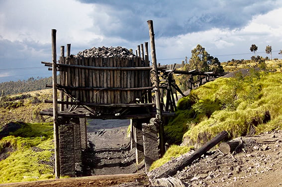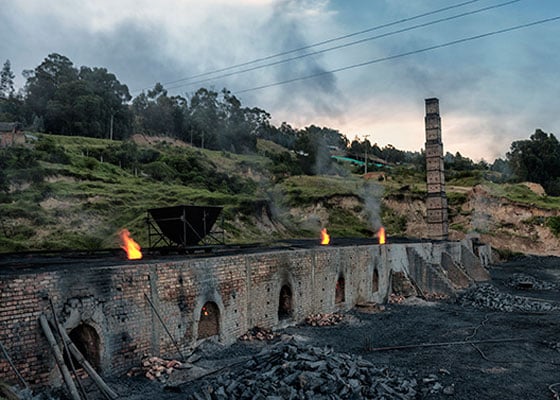 La escena de ese ritual artesanal se lleva a cabo en canteras a cielo abierto, cruzadas por un laberinto de socavones y un conjunto de hornos con chimeneas de 15 metros de altura que expulsan columnas de humo que se elevan sobre los municipios de Tausa y Guacheta, ubicados al norte de Bogotá y que hacen parte de los territorios de Cundinamarca que albergan más de 1.400 minas con una alta producción de carbón mineral.