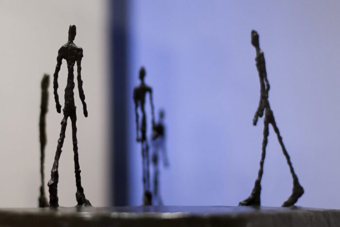 Alberto Giacometti fue un artista suizo que nació artista, pero nunca logró lo que él buscaba: un infinito del ser humano. Al contrario de Fernando Botero, el mundo de la figura humana se redujo a la figura escueta, donde era importante la huella de su expresión mientras la obra funcionara en relación con el espacio.
