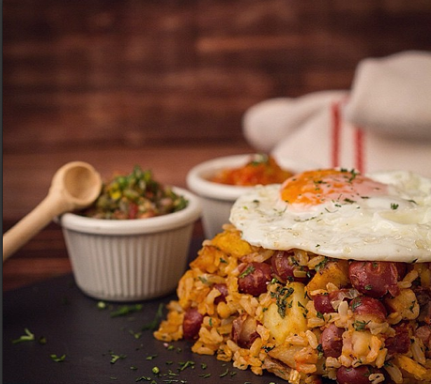El calentado es uno de esos platos que es imposible imaginarse sin pensar en una montaña arroz. Suna el suyo hecha a base quinua, guiso criollo y el resto que lo hace igual de abundante al de cualquier desayunadero típico.
