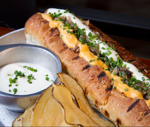 Para que los vegetarianos no se priven de un perro caliente, Chorilongo tiene una versión hecho con focaccia integral rellena de un chorizo de lentejas y tofu, aderezado con mayonesa de pimentón ahumado, salsa de queso parmesano y champiñones picados y marinados.