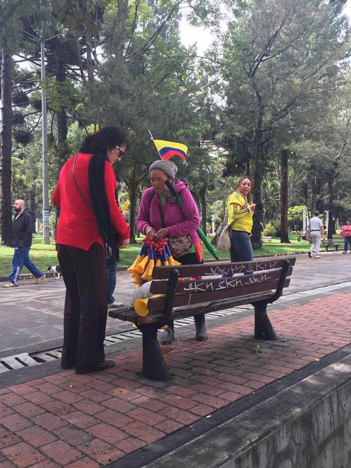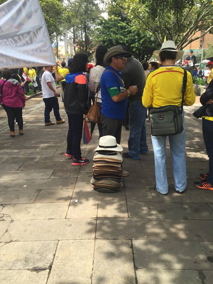 Cerca de 3 mil personas se congregaron en el Parque Nacional de Bogotá desde las nueve de la mañana para marchar en contra del Gobierno de Juan Manuel Santos. En los andenes de la carrera séptima se vendían sombreros aguadeños y ponchos en honor al expresidente Álvaro Uribe.