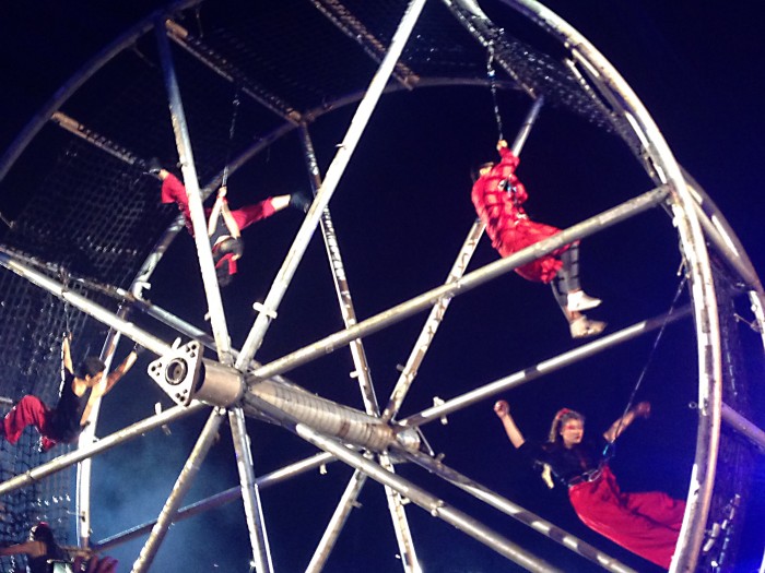 Y es que no es por el Presidente Santos hablando a través de las pantallas, sino viendo y sintiendo directamente a las víctimas, de cerca. Eso permite que quienes asistieron reconozcan las personas verracas, luchadoras y persistentes que son nuestras víctimas, quienes a pesar de haber vivido los más tremendos horrores, se han levantado fuertes, entusiastas y con la convicción de que acá no ganará la guerra. Esa convicción que llevó a que 30 jóvenes entrenaran duro, se aprendieran libretos, coreografías y hasta se montaran en grúas que los transportan por el aire.