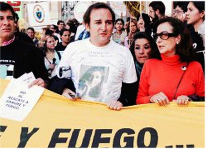 Lecompte al lado de su suegra Yolanda Pulecio en una de las manifestaciones buscando la liberación de Ingrid