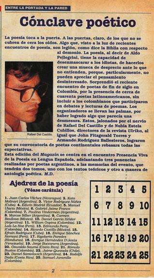Juan Manuel Roca vetó la aparición de mi nombre y mis artículos en el Magazín Dominical. La misma dosis de odio que destilaba contra Juan Gustavo, a quien llama prólogo borda. Incluso alicorado los viernes revisaba las galeradas del periódico para asegurarse que mi nombre no apareciera. Toda reseña de revista donde hubo un artículo mío, mencionaba el asunto, pero nunca mi nombre. Otro tanto hizo con la Historia de la poesía de Casa Silva y la antología de traductores donde no existo. Por más de 750 números quiso borrarme. Pero no pudo.