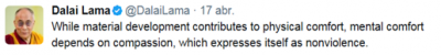 En medio de toda esta violencia el Dalai Lama tuitea: