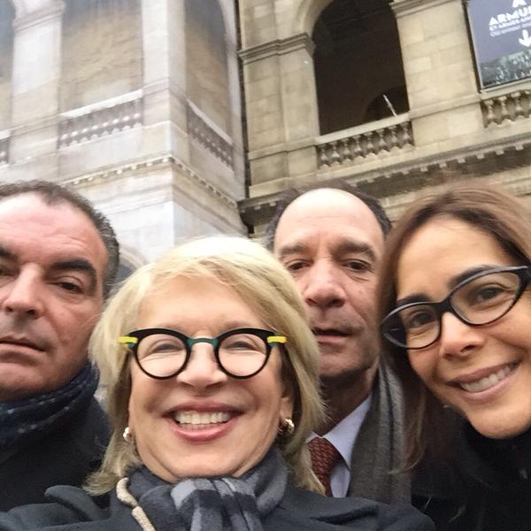 Esta vez el Presidente viajó acompañado por cinco ministros y algunos invitados más. Lo acompañan los ministros Mauricio Cardenas, Aurelio Iragorri, Gina Parody, Cecilia Álvarez, Mariana Garces y la canciller Holguín. Están también el expresidente Cesar Gaviria, el rector de la Universidad Externado Juan Carlos Henao, la directora de artesanías de Colombia Aida Furmanski con el embajador Federico Renjifo y su esposa Catalina Crane como anfitriones. El Presidente y sus ministros se hospedan en el tradicional hotel Bristol en París. El lunes comenzó su visita oficial con un encuentro con el Presidente Francois Hollande con quien tiene una cena privada en el Palacio del Elíceo. Aprovechará el viaje para pasar revista a la situación de Colombia frente a su ingreso a la Ocde, por lo cual se entrevistará con el secretario de la organización el mexicano Ángel Gurría. El último acto será colocar una ofrenda floral en la Plaza Republique como gesto de solidaridad con las víctimas de los atentados contra la revista Chalie Hedbo.