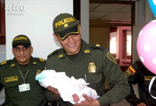El comandante Palacios sosteniendo a la niña indígena que él ayudó a nacer