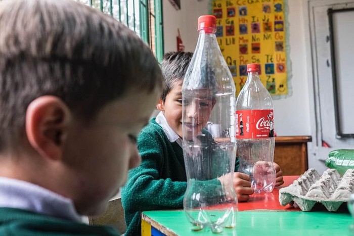 Como en Arrayanes Bajo, a diferencia de Bogotá, el servicio de recolección de basura no tiene rutas ni horarios establecidos. Y si llega, hay que caminar varios kilómetros para dejarla en el punto acordado, los habitantes generalmente realizan quemas para deshacerse de los residuos. Entonces, para disminuir esta práctica y evitar acumulación de basura, los docentes de La Argentina crearon el centro de interés de reciclaje que también afianza la motricidad fina y la creatividad.