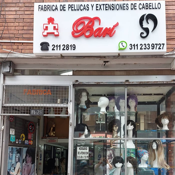 En Bari y en otros locales de Chapinero se pueden encontrar pelucas hechas con pelo natural desde los 300 mil pesos y el valor puede llegar a los dos millones.
