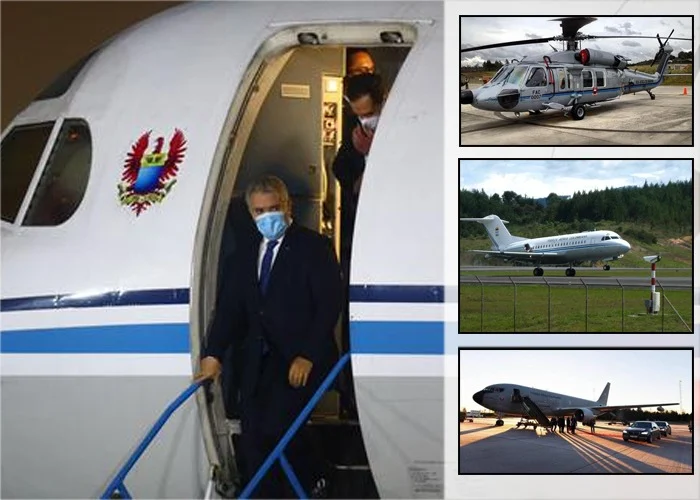 Cinco aviones y 3 helicópteros manejados por la FAC están a las órdenes del presidente para sus desplazamientos oficiales, aunque los utiliza también para planes personales. En los últimos meses sus viajes se han duplicado, ha viajado a Londres, Estambul, Davos regresó para votar por quien será su sucesor y salió rumbo a Estados Unidos a una gira por los 200 años de relaciones bilaterales que coincidió con un fin de semana. Ahora se encuentra en las Cumbres de las América. Duque se mueve en un FAC 0001.