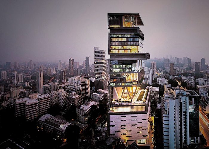 Antilla, el edificio donde vive en Mumbai es la segunda residencia privada más cara del mundo después del Palacio de Buckingham